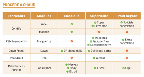 Il existe une multitude de référence de poudre à crème. Voici deux tableaux récapitulatifs des marques et références phares du marché.
