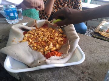 L’injera, fabriqué à partir d’un levain de teff, se présente sous forme d’une crêpe qui ressemble beaucoup à une galette bretonne. (© Olivier Lasbouygues)